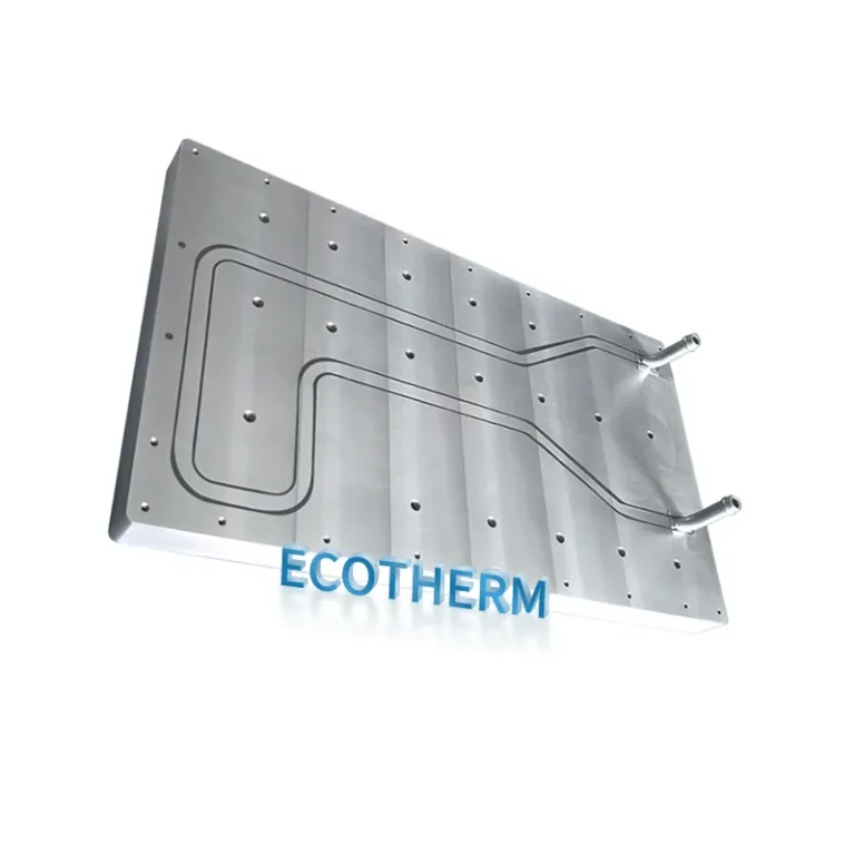 This custom pure aluminum cold plate is made from high-purity aluminum. It features precisely formed internal flow channels that create an efficient liquid circulation path, allowing heat from the source to be rapidly transferred through the aluminum body to the flowing coolant.
