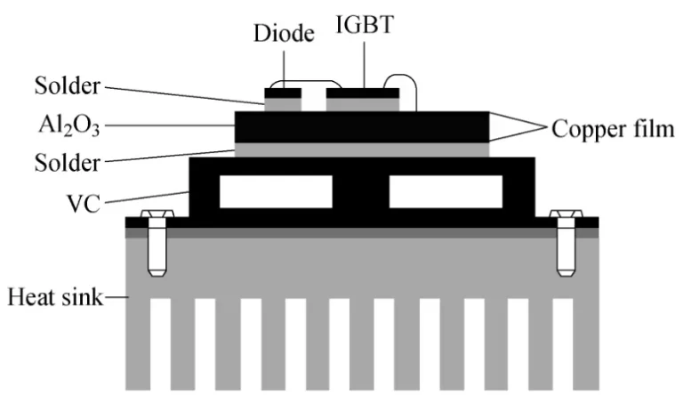 How does a Vapor Chamber improve IGBT thermal management? Unlike standard heat pipes that transfer heat in one dimension (1D), a Vapor Chamber spreads concentrated heat rapidly across a two-dimensional (2D) plane. This effectively eliminates localized hot spots beneath the chip, substantially lowering maximum thermal stress and extending the IGBT’s operational lifespan.